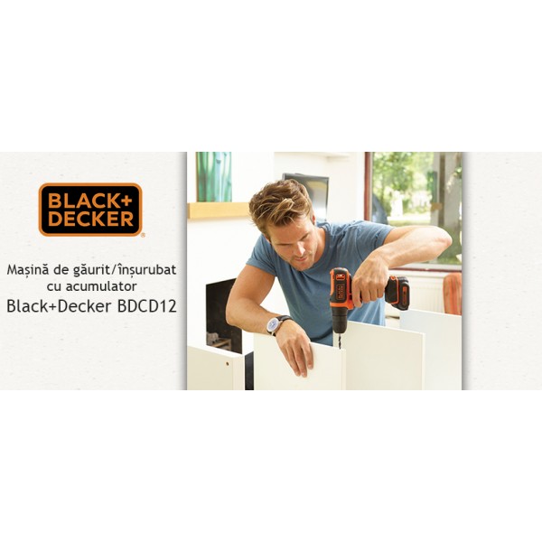 Mașina de găurit/înșurubat cu acumulator BLACK+DECKER BDCD12 - este un instrument simplu și comod, care va fi un asistent de încredere în diverse instalații sau lucrări de asamblare.